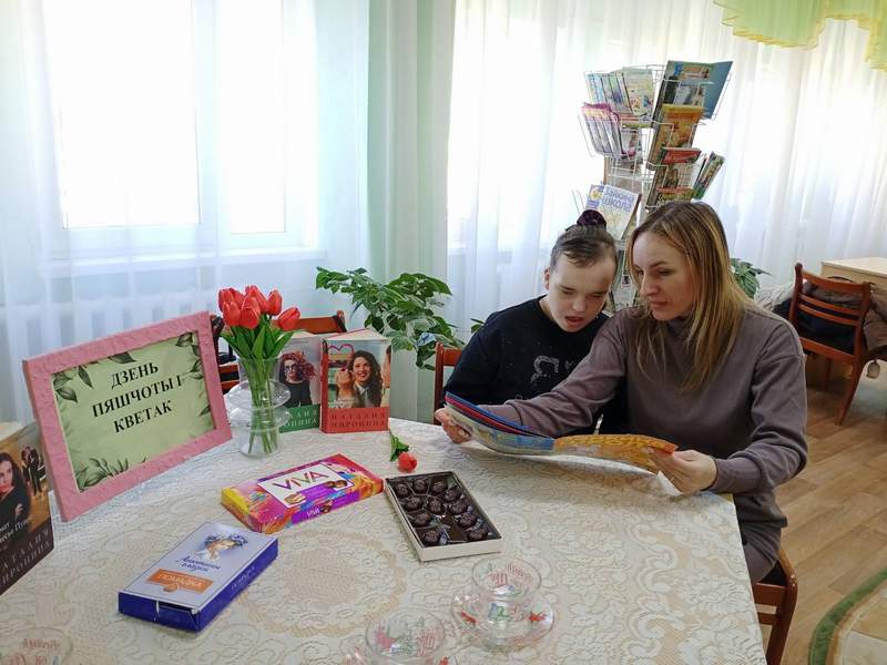 Напярэдадні Міжнароднага жаночага дня, 5 сакавіка, супрацоўнікі філіяла “Наваельнянская ГПБц” правялі літаратурна-музычную залу “Дзень пяшчоты і кветак”. Наша ўтульная зала сабрала матуль і юную ўдзельніцу, каб разам сустрэць надыходзячае святы вясны.