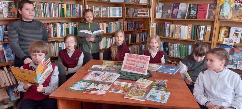 Напрыканцы мерапрыемства бібліятэкар пазнаёміла з кніжнай выставай “Беларуская кніга для Вас!”, дзе былі прадстаўлены творы беларускіх аўтараў: А. Якімовіча “Казкі-крыжаванкі”, М. Пазнякова “У родным краі”, “Мая цудоўная Радзіма”. К. Хадасевіч-Лісавой “Сакрэты аднаго каралеўства”, “Знаёмцеся- падабайка”, Э. Агняцвет “Мой рыжы Бім”, “Свята кнігі”, “Дзяцінства светлы час”, “10 пытанняў пра Беларусь”  і іншыя.