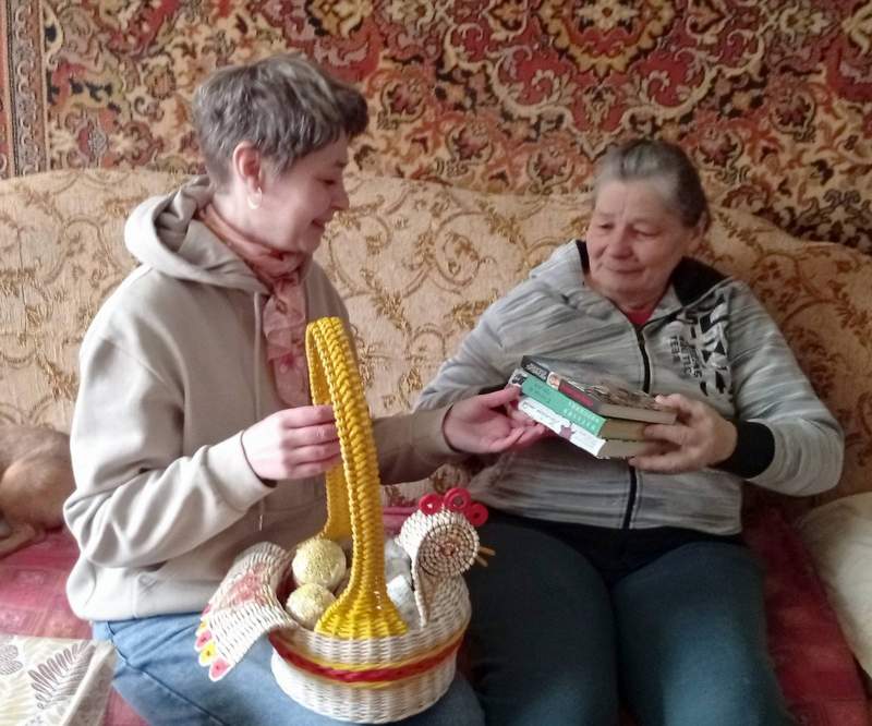 Напярэдадні светлага свята Вялікадня добрыя справы аб’ядноўваюць сэрцы. 10 красавіка ў межах сацыяльнага бібліятэчнага праекта “КнігаЗКлопатам” бібліятэкары філіяла “Наваельнянская ГПБц” наведалі сваіх асаблівых карыстальнікаў — людзей пажылога ўзросту і тых, хто па стане здароўя не можа самастойна завітаць у бібліятэку. Гэтыя візіты сталі сапраўднымі святам і чалавечай цеплыні. Разам з любімымі кнігамі і часопісамі бібліятэкары прынеслі ў дамы гасцінцы і, самае галоўнае, шчырую ўвагу.