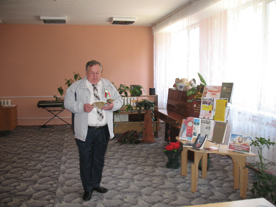 8 мая Гезгалаўская сельская бібліятэка-цэнтр экалагічнай культуры падрыхтавала і правяла літаратурна-музычную кампазіцыю прысвечаную Дню Перамогі “Вайны святыя старонкі, навекі ў памяці людской”, агляд ваеннай прозы “Трагічная праўда вайны”. Старшыня пярвічнай арганізацыі ветэранаў вайны працы і ўзброеных сіл Аляксандр Віктаравіч Волкаў, Акрытава Таццяна Барысаўна, дачка ветэрана Вялікай Айчыннай вайны Акрытава Барыса Аляксеевіча, мясцовая паэтка Вера Ігнатаўна Хрышчановіч. Сталі ўдзельнікамі абласной акцыі “Чытаем разам творы пра герояў Вялікай Айчыннай вайны”, раённай акцыі “Чытаем разам аб вайне”. Удзельнікі мерапрыемства падзяліліся ўспамінамі пра сваіх продкаў, якія ваявалі ў той далёкай вайне, чыталі вершы аб вайне.