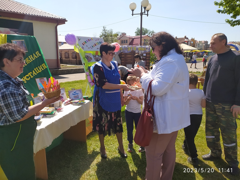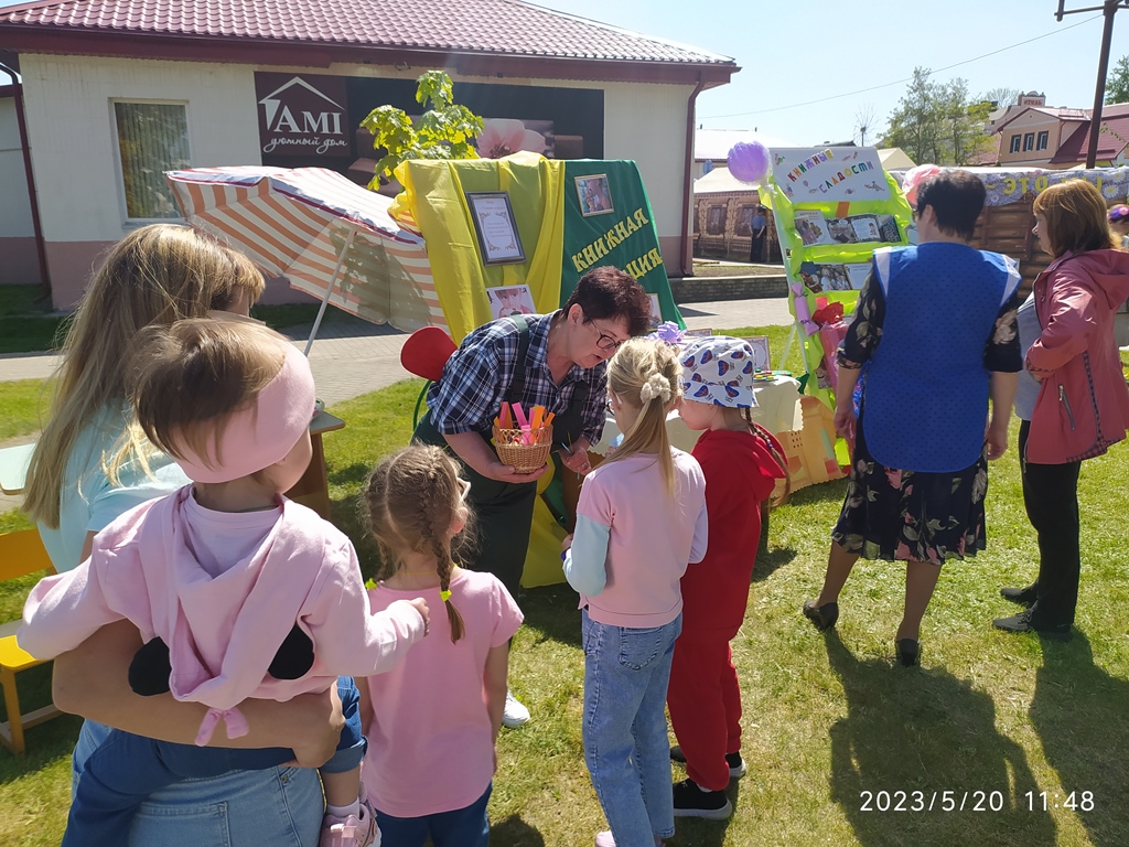 20 мая філіял “Казлоўшчынская ГПБц” прыняла ўдзел у раённым свяце “Зецельскі фэст” і прадставіла інтэрактыўную пляцоўку “Сладкоежка” з выставамі “Книжные сладости” і “Книжная дегустация”. На кніжнай дэгустацыі можна было “паспрабаваць” торт “Белорусочка”, дэсерт “Для милых дам”, мус “Сказочный”, пірог “Фантастический”. Для дзяцей Карласан і Фрэкен Бок разыгрывалі “салодкую віктарыну”, гулялі  ў  “Резиночку”, “Хто хутчэй”  і  спаборнічалі за званне “Лепшы шафёр”. Для дарослых прапанавалі “печенье с предсказаньями”.