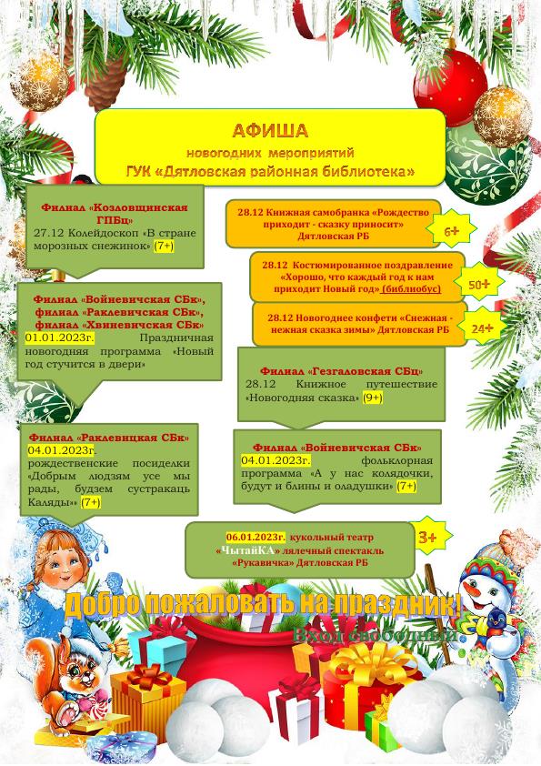 Новый год – это самый волшебный, самый красивый, самый таинственный и веселый праздник! Сотрудники библиотек района подготовили для своих читателей ряд развлекательных новогодних мероприятий. Уютные фотозоны, необычные ёлочки, весёлые конкурсы, любимые герои, интересные сказки — и это ещё не весь список подарков и сюрпризов. Ждем вас на наших мероприятиях!!!
