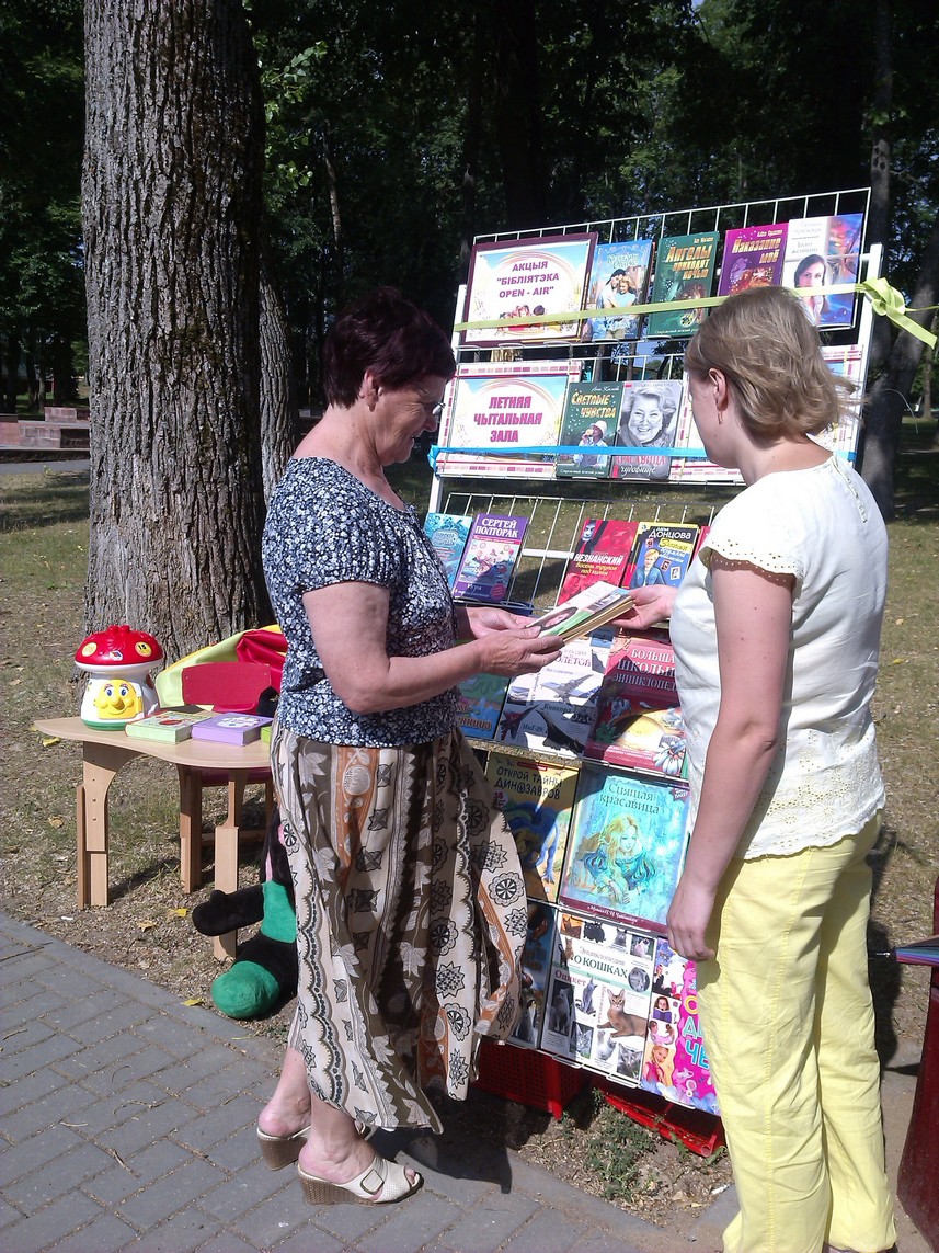 Дзятлаўская раённая бібліятэка прыняла ўдзел у акцыі “Бібліятэка–Open-air”. Мэта акцыі – стварэнне імправізаванай летняй чытальнай залы на свежым паветры. 21 чэрвеня бібліятэка ладзіла чытальную пляцоўку ў гарадскім скверы пад назвай “Пад кніжным парасонам”. Кожны жадаючы змог пазнаёміцца з кнігамі, часопісамі і газетамі, запісацца ў бібліятэку. Для дзяцей быў створаны дзіцячы куток, дзеці гулялі з кнігамі-гульнямі, канструктарам, лато. Жыхарам горада бібліятэкары раздавалі каляндарыкі з запрашэннем наведаць бібліятэку.